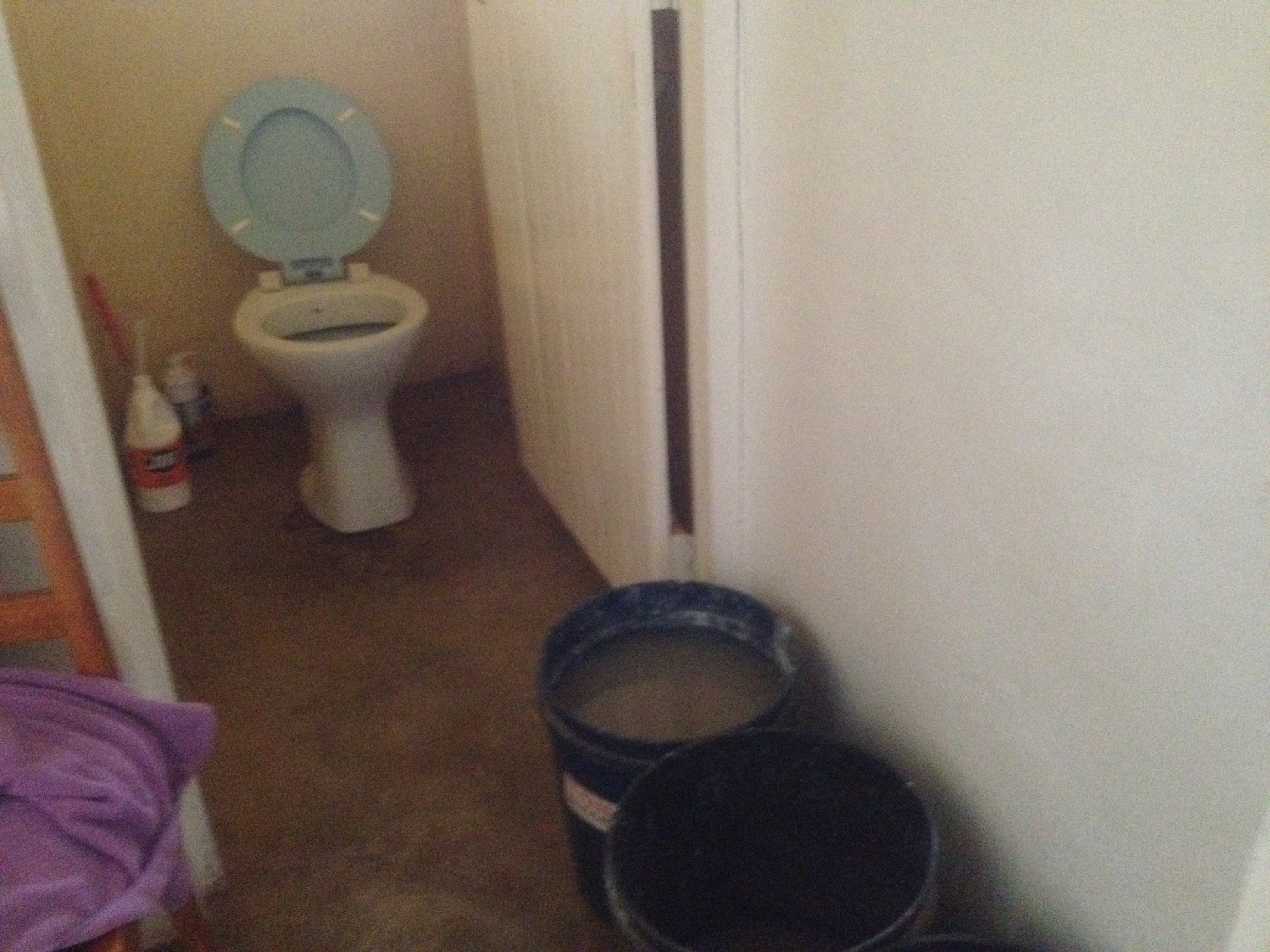Rubber gloves on to clean the toilet, washing it down with brown dishwater so it still looks like shit.